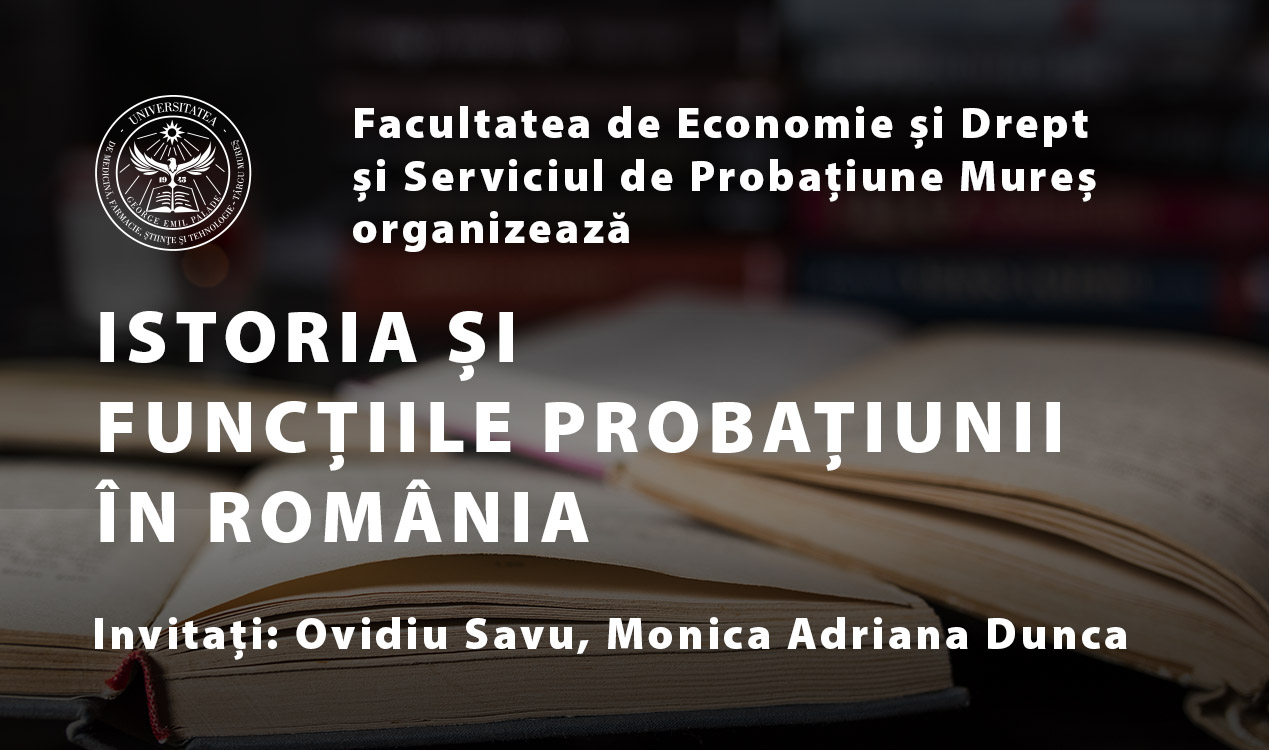 La data de 31 octombrie 2023, îi avem ca invitați pe reprezentanții Serviciului de Probațiune Mureș, de la orele 10, la sediul Facultății de Economie și Drept, din cadrul UMFST ”G.E. Palade” din Târgu Mureș. Vă așteptăm cu drag!
